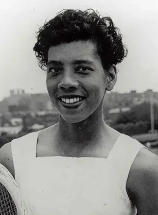 Althea Gibson was the first African-American tennis player to play and win at the U.S. Nationals (the equivalent of the U.S. Open today) and Wimbledon. She was born in South Carolina and started playing tennis around the age of 18 at a private Black tennis club. Gibson earned a sports scholarship at Florida A&M through her skill and received her BA at the age of 27. She first appeared at the U.S. Nationals in 1950 and won in both 1957 and 1958. She also won tournaments at Wimbledon in 1958. In 1960, Gibson took to golf and became the first African-American woman to be part of the Ladies Professional Gold Association.
